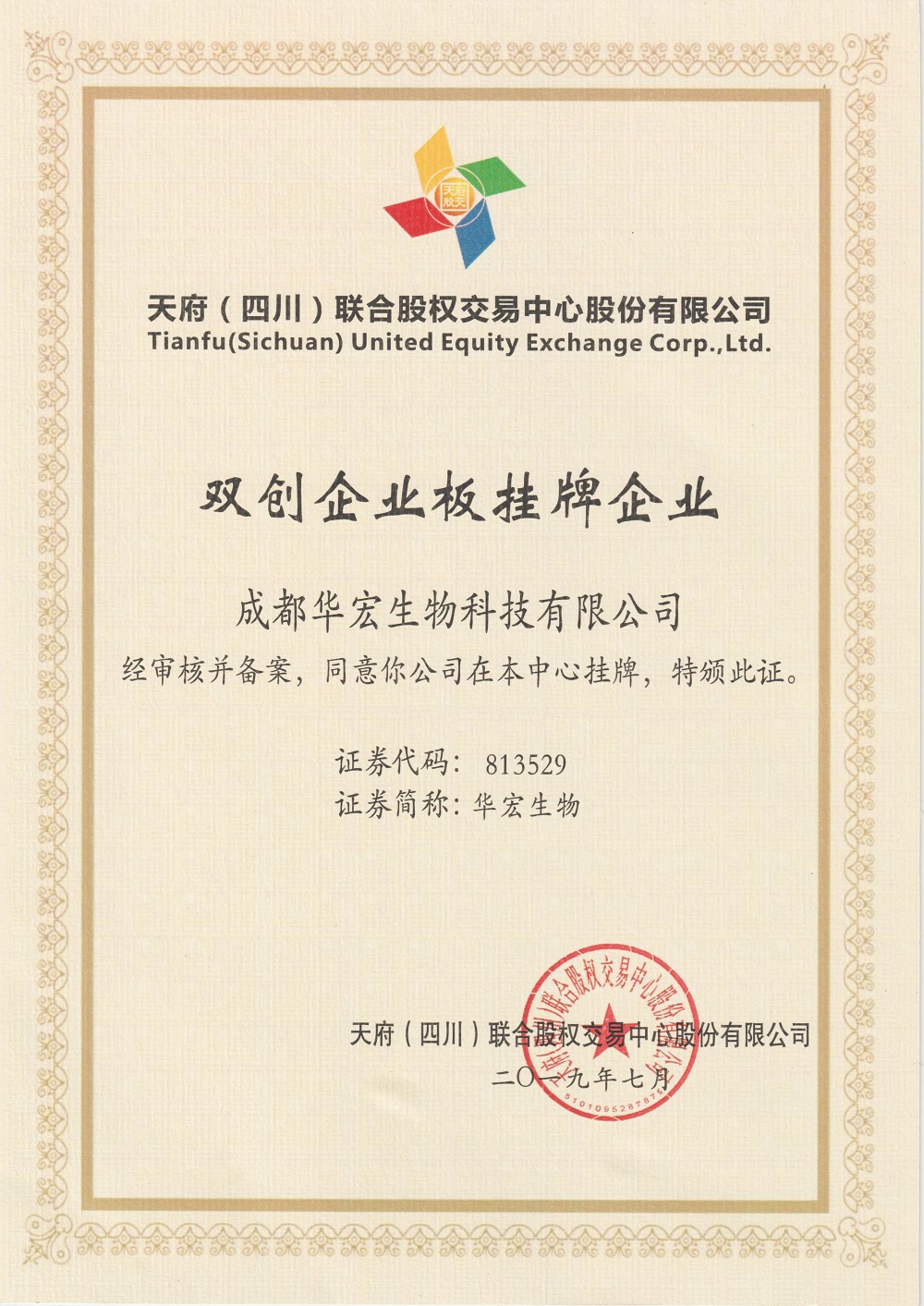 雙創企業版掛牌證書